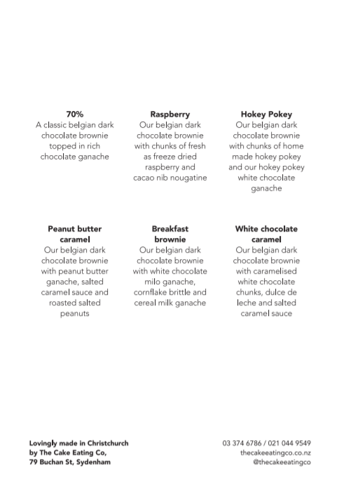 Hokey Pokey – Our belgian dark chocolate brownie with chunks of home made hokey pokey and our hokey pokey white chocolate ganache