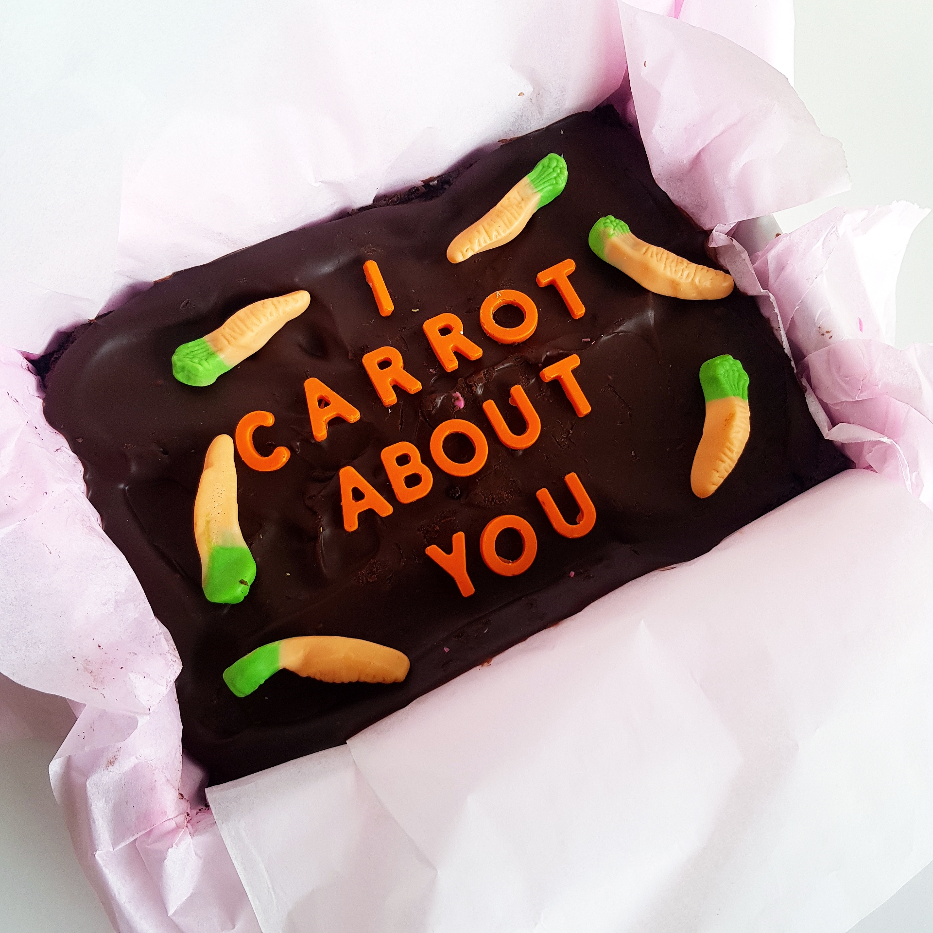 The whole brownie piece is approximately 22cm x 15cm. Due to the bespoke nature of our products they may vary slightly in look from the images.