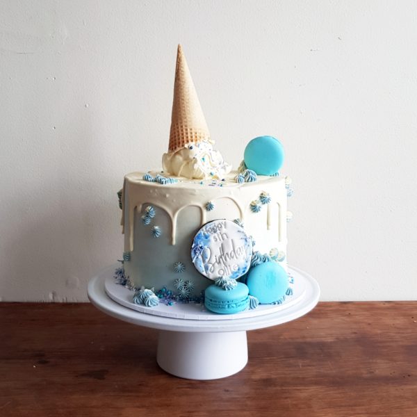 Due to the bespoke nature of our cakes they are not identical, but will be decorated in the same style as pictured, and to the same value. Pictured cake is 8″ wide.