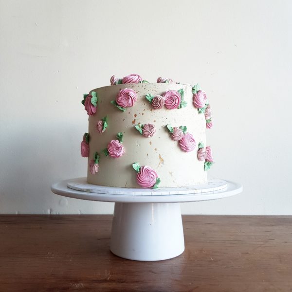 Cakes tiers are made of two layers, to the height of 4″ per tier.