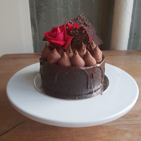 While this cake itself is vegan friendly please note that it is produced in a kitchen that handles animal products.