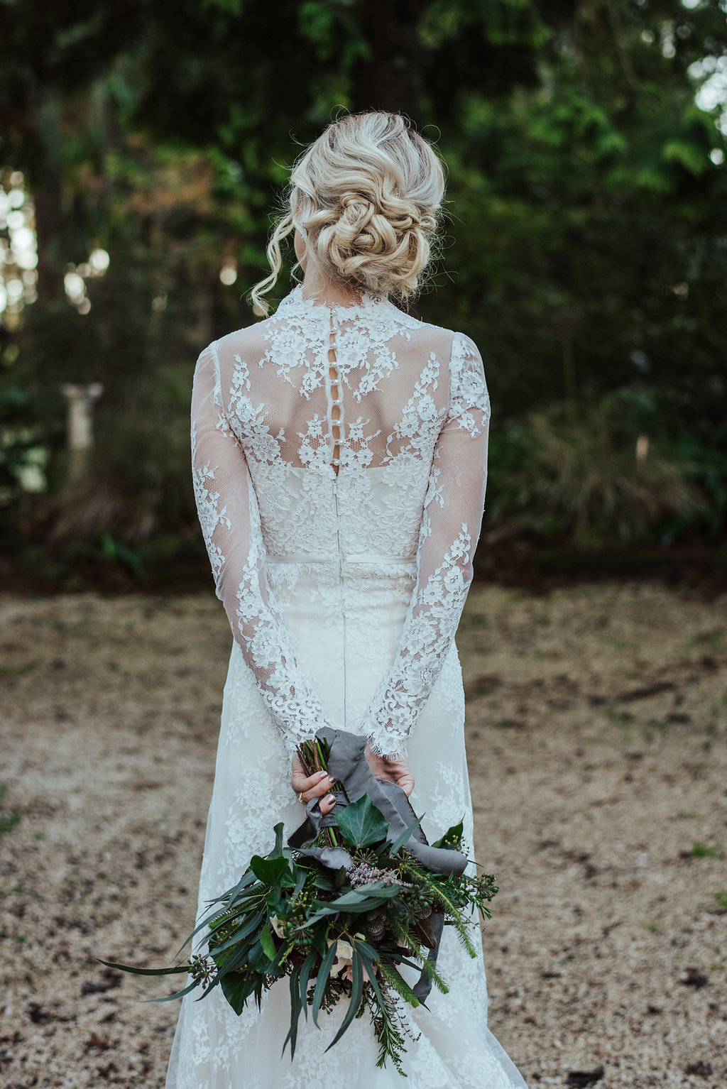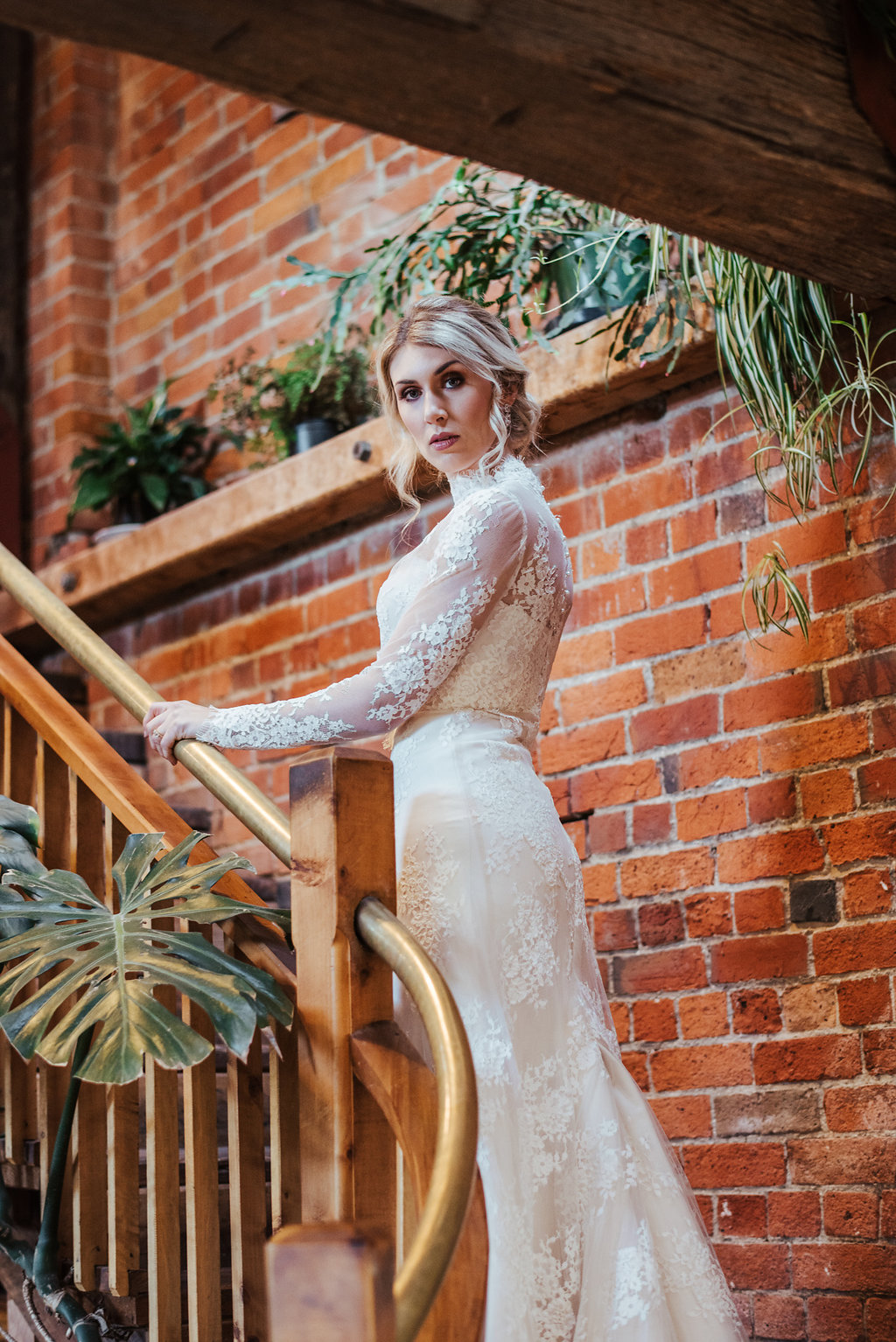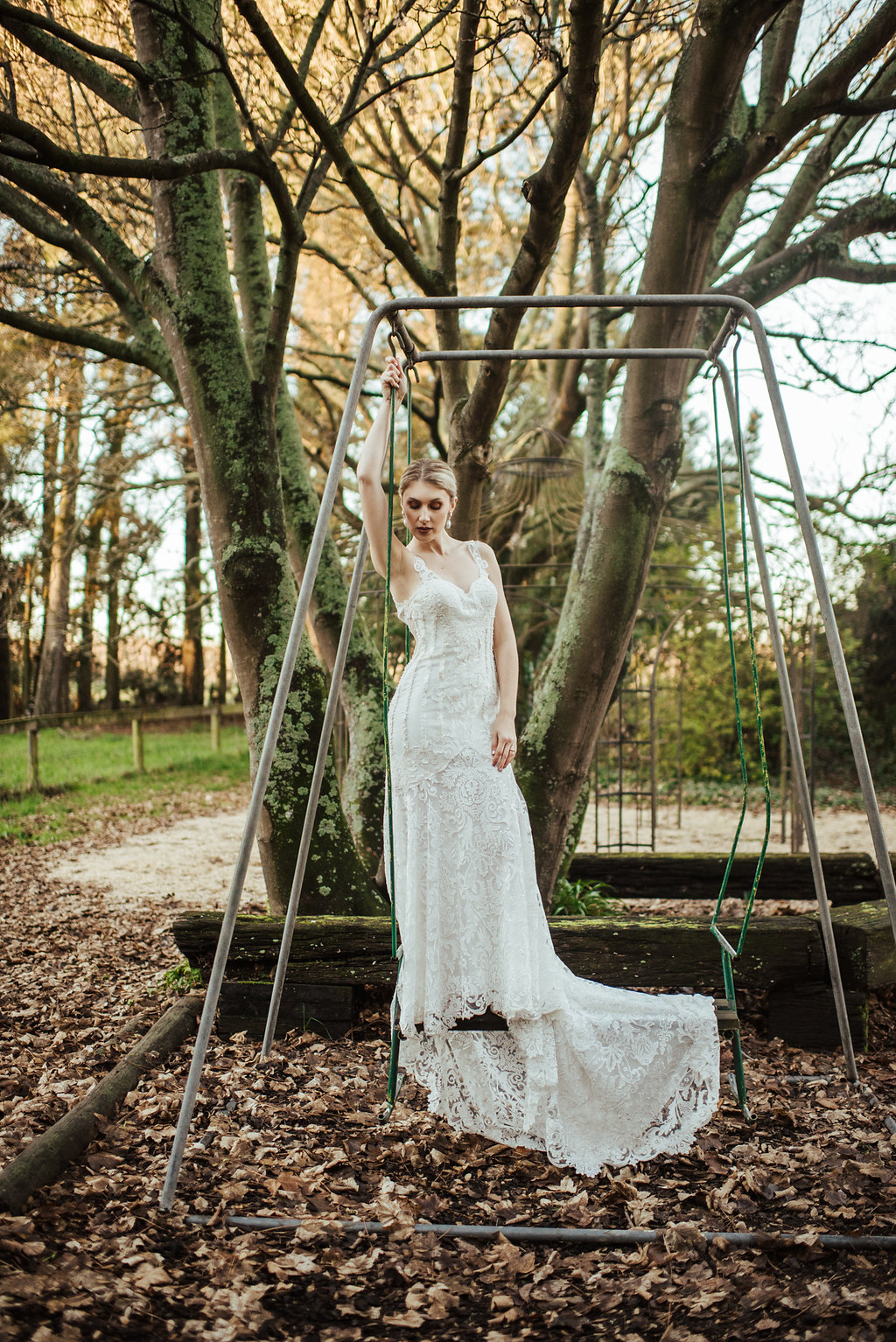 Based on a warm winter wedding theme with rich golds, dark chocolates and earthy tones the shoot was perfectly set at the stunning Trents Vineyard. Lace gowns from Mille Feuille Bridal added a touch of extra luxe to shoot.