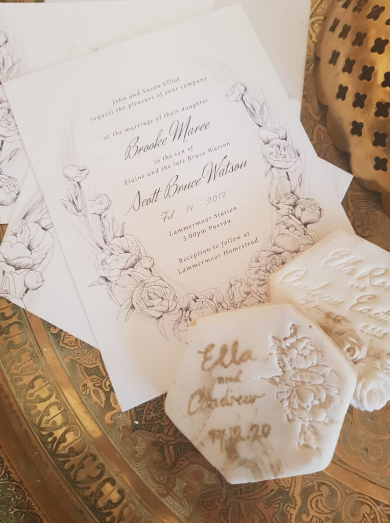 Cookies can be customised to match your invitations (including matching font and images). We would organise for a custom cookie stamp to be made for this option which is $20 or if your wedding cake is also being ordered with us it would be complimentary.