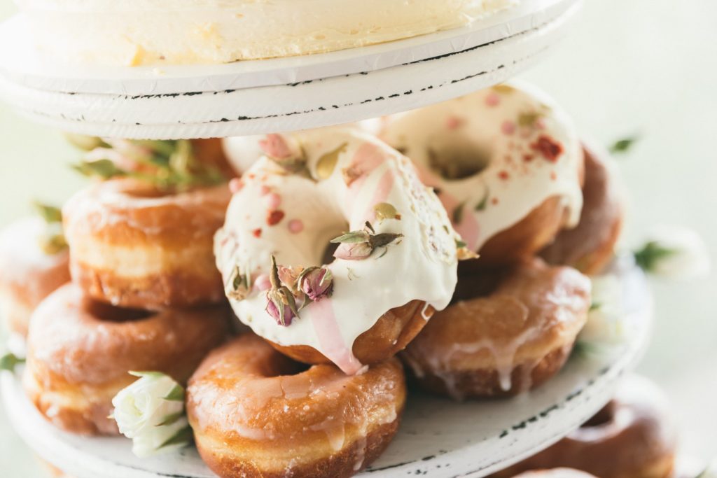 Donuts are from $3 each for plain glazed, cinnamon or sugared, from $4 for ganache iced and $4.50 for decorated. Minimum order of 20
